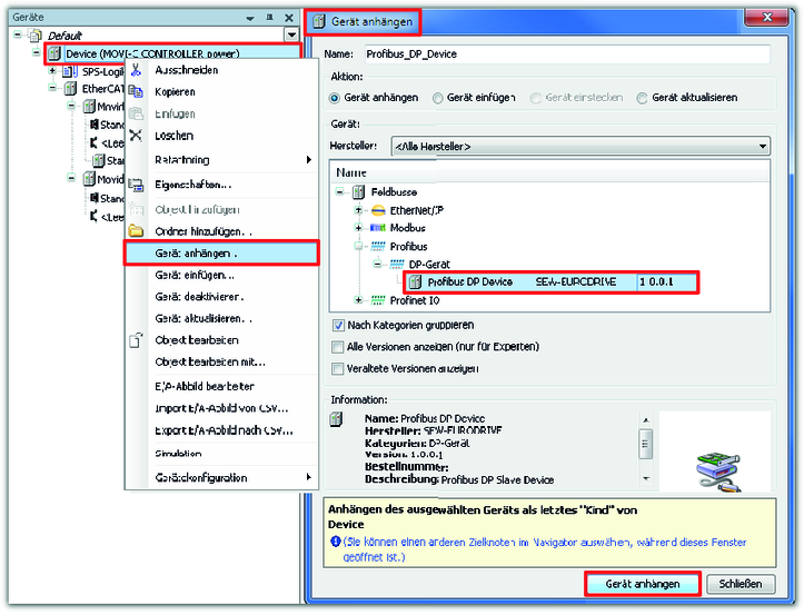 - Gerätebeschreibungsdatei vom MOVI‑C® CONTROLLER installieren
