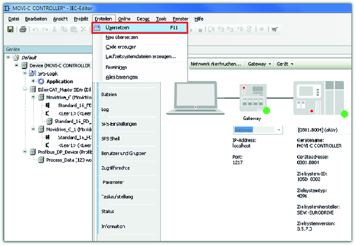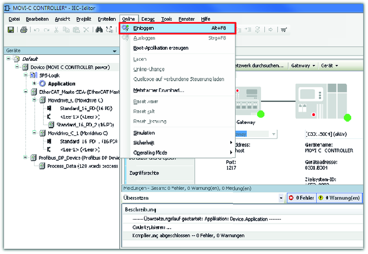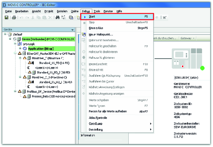 - Feldbusoption ins IEC‑Programm vom MOVI‑C® CONTROLLER integrieren und konfigurieren