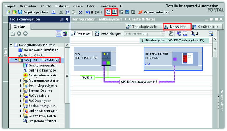 Die Daten (PROFIBUS‑Adresse, Prozessdaten), die dem Feldbusteilnehmern während der Konfiguration vergebenen wurden, sind vorerst nur im TIA‑Portal-Projekt auf dem Engineering‑PC definiert. Erst durch das Laden des Projekts in die SPS werden die Daten in die SPS übertragen und aktiviert.