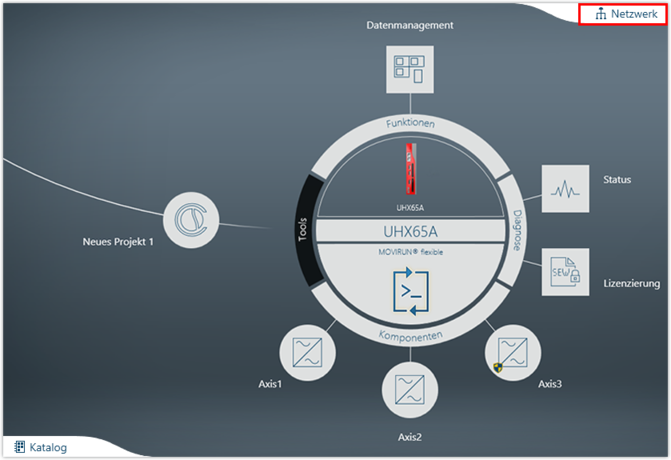 Die Inbetriebnahme wird an einem Beispiel näher erläutert. Im Beispiel wird ein MOVI‑C® CONTROLLER progressive UHX65A‑R in ein PROFINET-Netzwerk eingebunden.