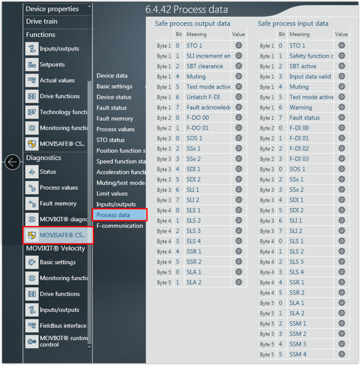 For a detailed description of the process data, refer to the manual of the respective safety card.