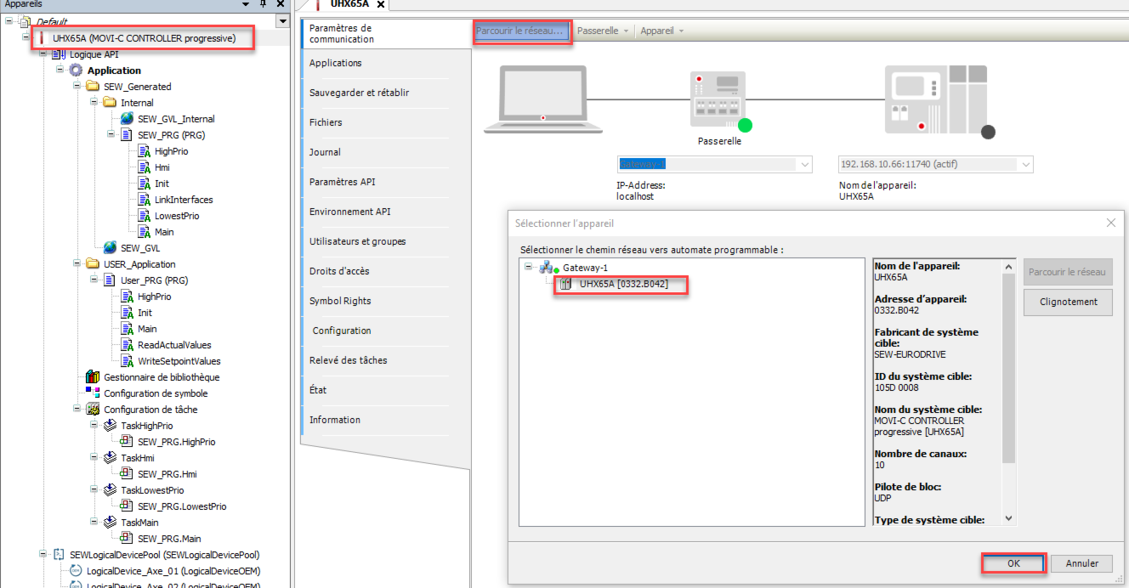 Configuration des appareils du système d'automatisation modulaire MOVI‑C® dans MOVISUITE®