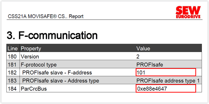 Para a aceitação do sistema relacionada à segurança, um relatório de aceitação da placa de segurança é gerado e arquivado. No capítulo 3 do relatório de aceitação pode ser encontrado o valor da soma de verificação ParCRCBus (iPar_CRC) aceita da placa de segurança.