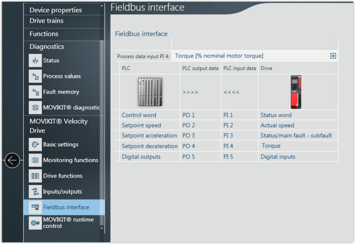 L'interfaccia dati di processo flessibile delle unità può essere configurata personalmente dall'utente. Ciò offre la massima flessibilità all'utente, tuttavia richiede anche conoscenze particolari dell'unità, dei parametri e delle possibilità di configurazione.
