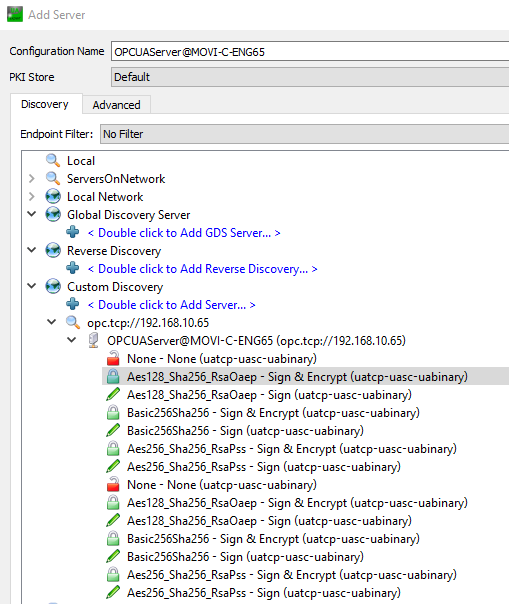 Über Zertifikate können sich die Kommunikationspartner bekannt machen, ihre öffentlichen Schlüssel austauschen und eine sichere Verbindung aufbauen. Über den Dialog Ansicht > Security Screen können im Dialogfenster unter dem Reiter Geräte die Zertifikate des Servers gescannt werden. Im rechten Dialog erstellen Sie ein selbstsigniertes Zertifikat des Servers.