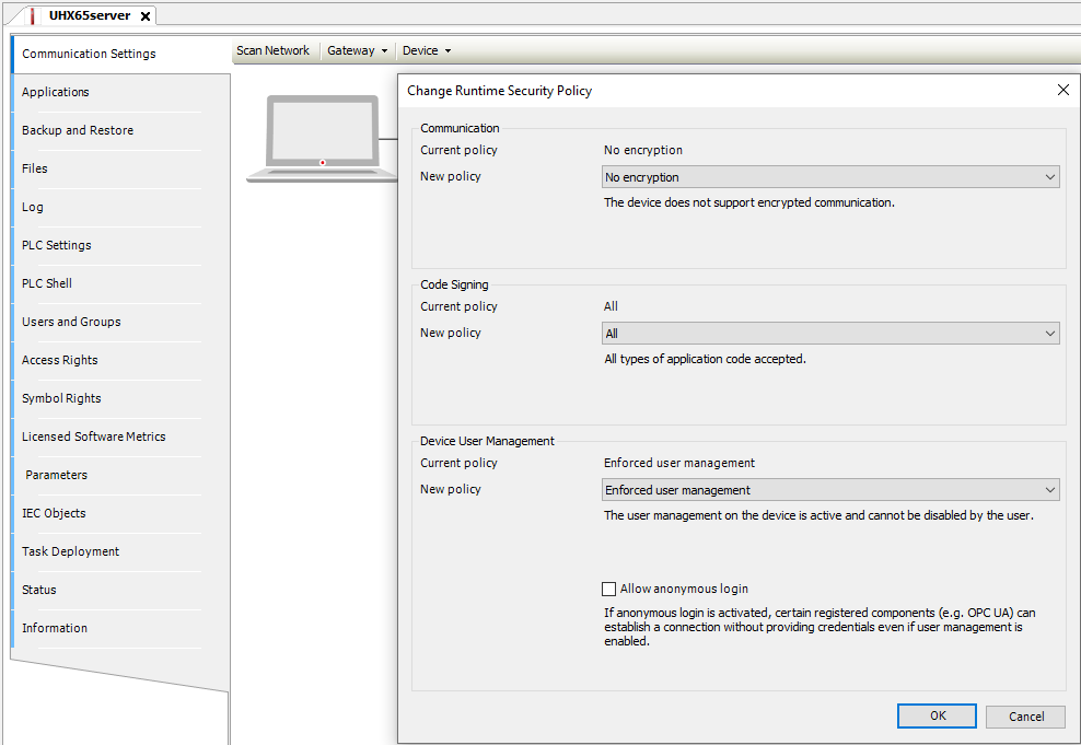 - Usecase: The simple OPC UA server without IT security