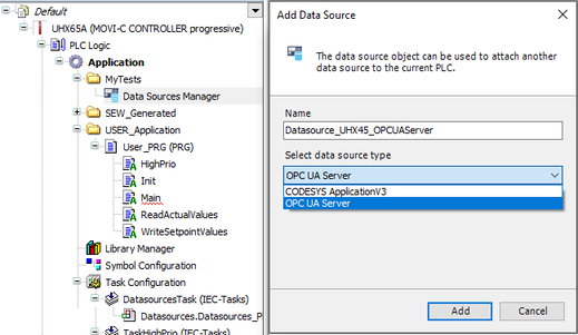 - In the IEC project, add a "Data Sources Manager" object in the device tree.