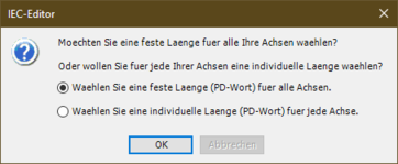 - Konfiguration der Anzahl der Prozessdaten zwischen Gateway und den einzelnen Umrichtern. Dazu können Sie eine gemeinsame Prozessdatenlänge für alle Achsen oder individuelle Prozessdatenlängen für die einzelnen Umrichter konfigurieren.
