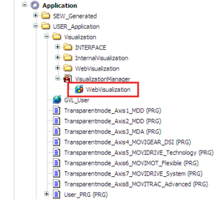 - Erweiterung des IEC-Projekts mit dem IEC-Programmcode für das Softwaremodul MOVIKIT® Web Visualization.