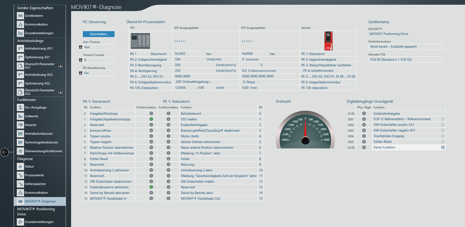 Bei der Verwendung eines Softwaremoduls MOVIKIT® der Kategorie "Drive" werden die Prozessdaten unter [Diagnose] > [MOVIKIT®-Diagnose] decodiert angezeigt.