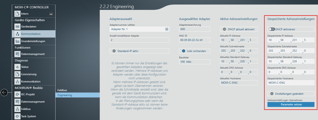 - Stellen Sie in MOVISUITE® die IP-Adresse ein: