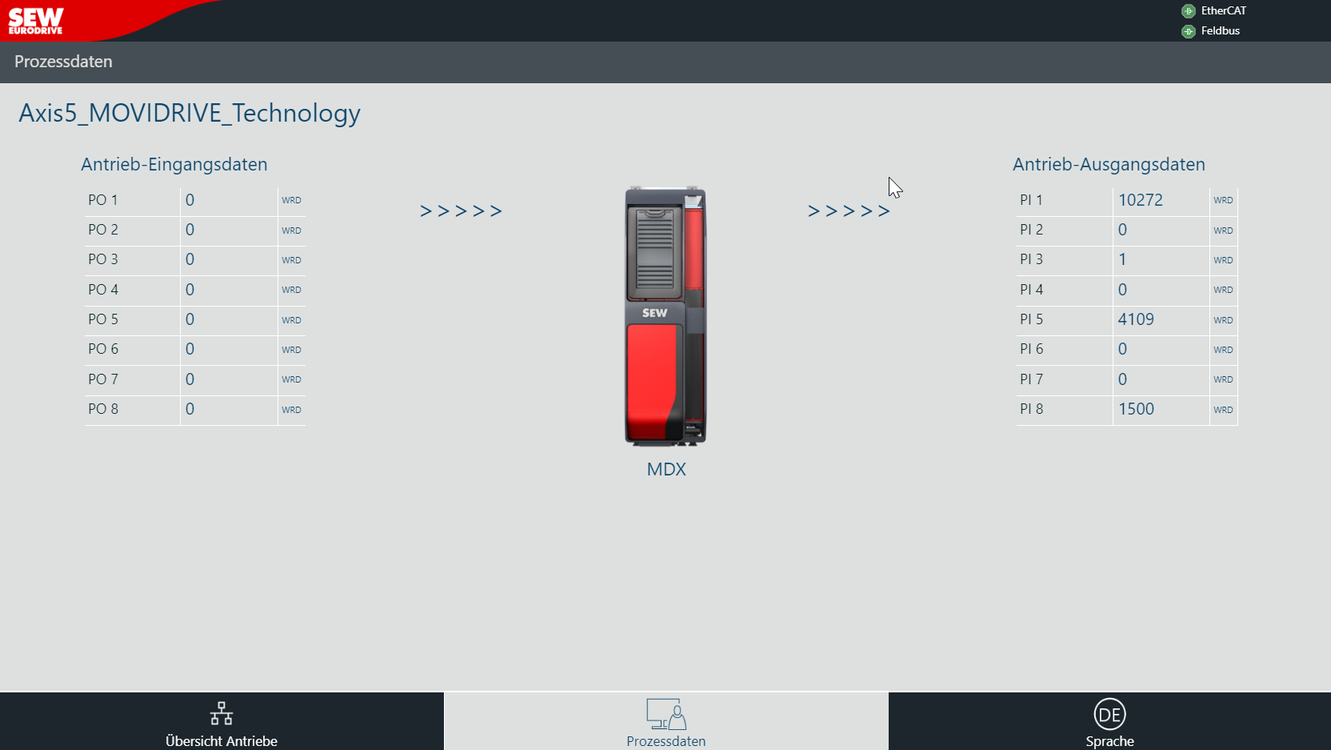 - Status der Feldbus- und EtherCAT®-Kommunikation
