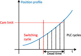 The cam switches to the PLC cycle in which the extrapolated position has exceeded the cam limit.