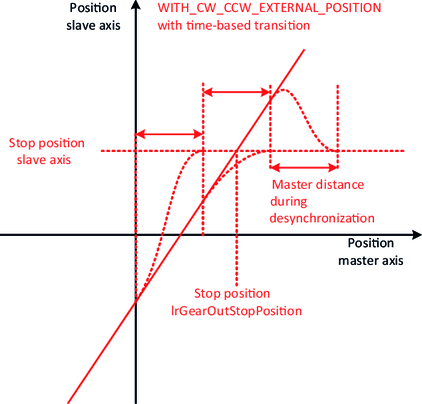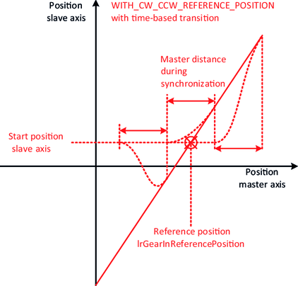 - In the case of the synchronization mechanism with a reference position, the "attachment point" results from the current position of the slave axis and the configured reference position IrGearInReferencePosition of the master axis.