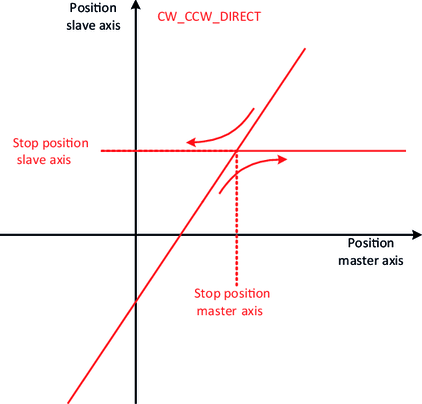 - In the case of the direct synchronization mechanism, the "attachment point" results from the current positions of the master axis and the slave axis.