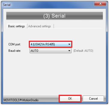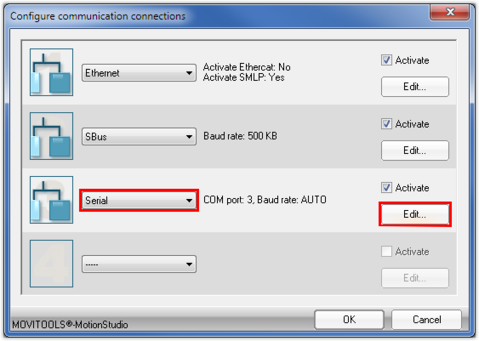 - Select the "Serial" entry from the drop-down list of a communication connection that is not yet in use.