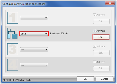 - Seleccione en la lista desplegable de una conexión de comunicación todavía no empleada el elemento "SBus".