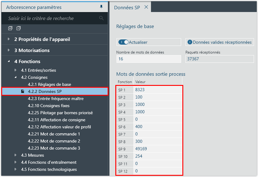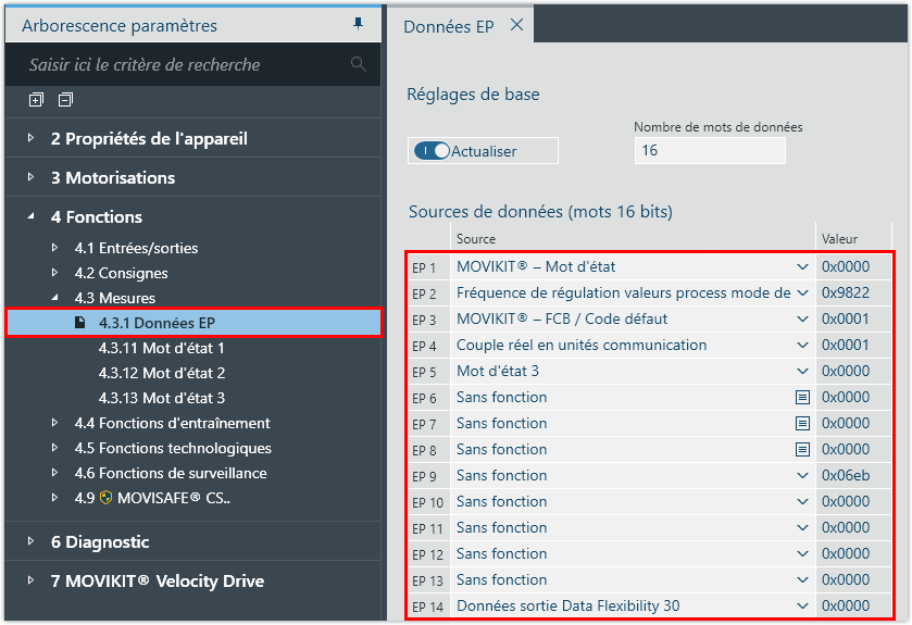 Configuration manuelle des données process