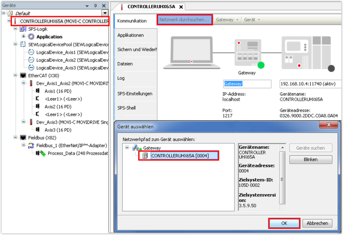 Die Inbetriebnahme der anderen Controller des Automatisierungsbaukastens MOVI-C® erfolgt analog.