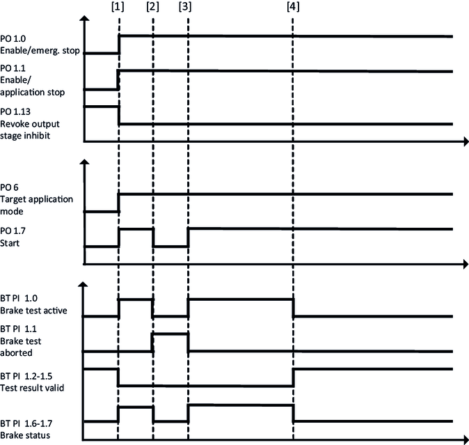 The brake test can be adapted ideally to the requirements of the application. The test result "OK" (passed) and "NOK" (failed) and optionally other measured values are available as feedback for each brake.