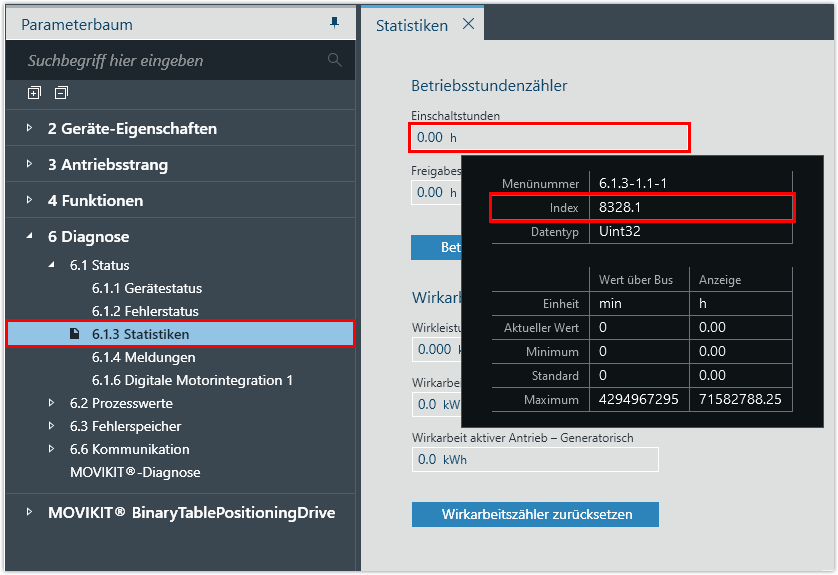 - Parameterindex in MOVISUITE® ermitteln