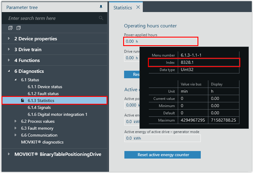 - In this example, the parameter has the Index.Subindex: 8328.1