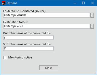 - Automatisches Konvertieren der JSON-Dateien aus dem für die Überwachung festgelegten Verzeichnis aktivieren (Entspricht der Schaltfläche [Monitoring starten] in der Menüleiste).
