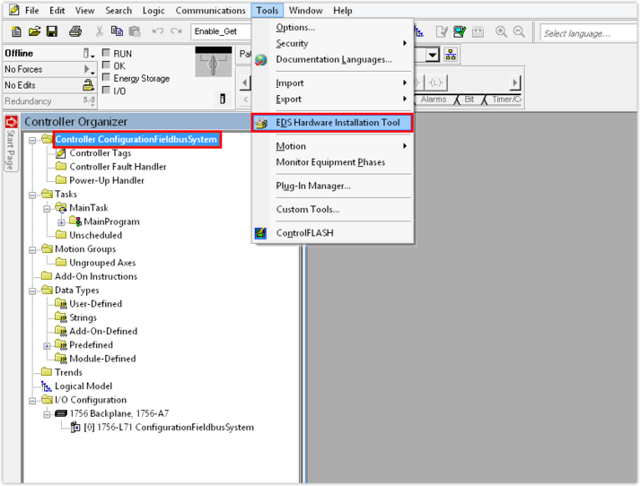 - Charger le fichier de description d'appareil dans l'outil Logix Designer.