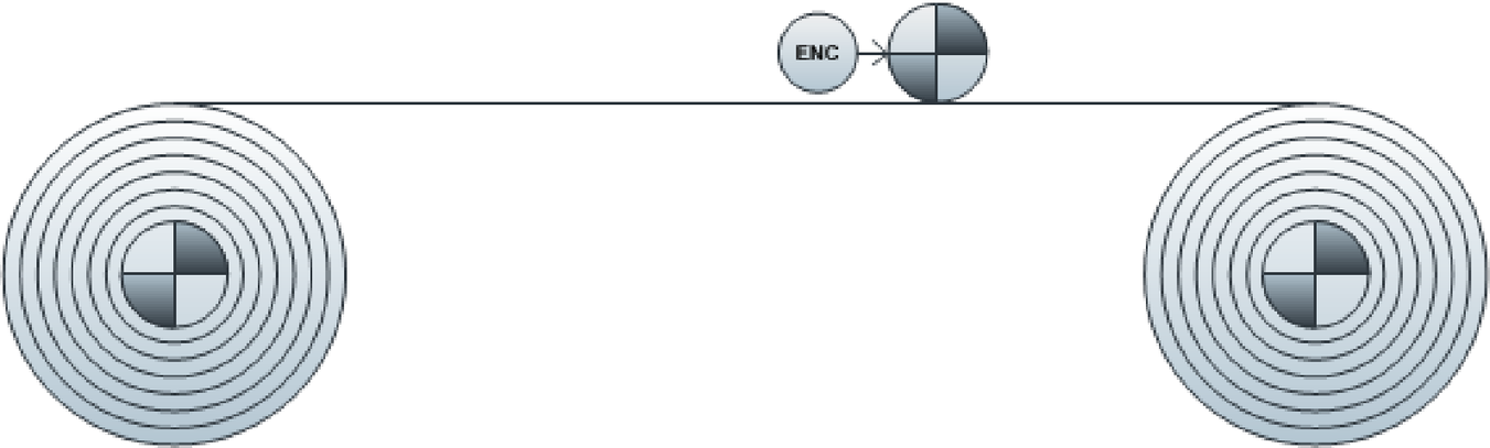 Material auf einen anderen Coil umwickleln, wobei der eine Wickler die konstante Bahngeschwindigkeit und der andere Wickler die konstante Zugkraft vorgibt.