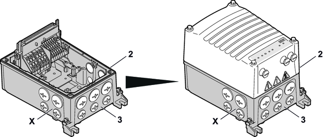- X: 2 x M25 x 1.5 + 2 x M16 x 1.5