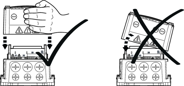 - Coloque la tapa de la electrónica sobre la caja de conexiones. Asegúrese de no cantear la tapa de la electrónica.