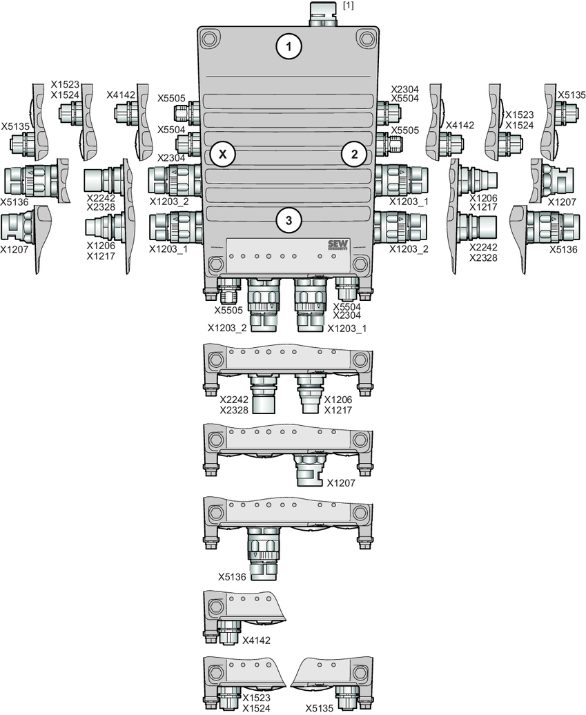 - Posiciones de conectores de la unidad de accionamiento MOVIGEAR® performance DAC