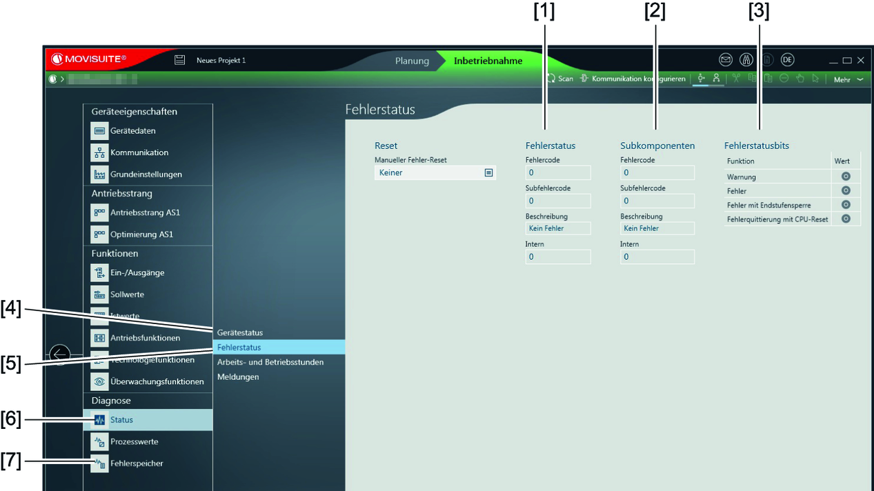 - Fehlermeldungen mit parametrierbarer Reaktion