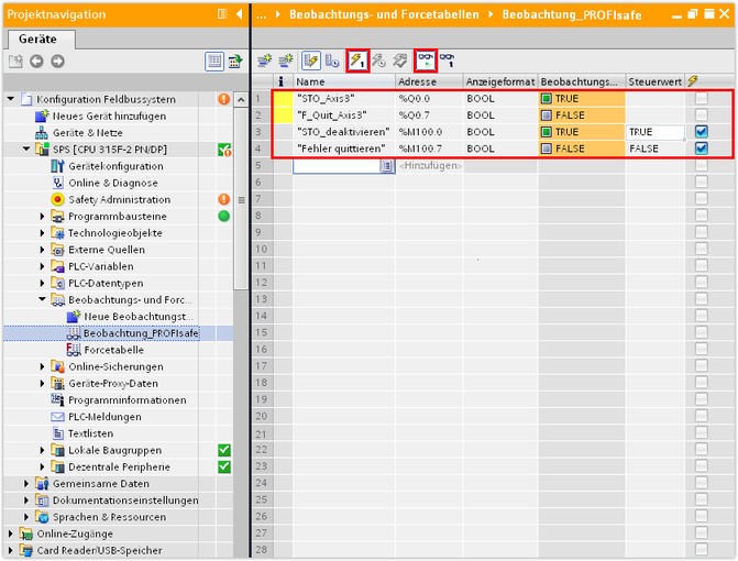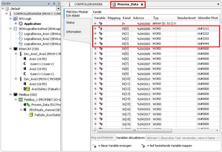 Bei einer erfolgreichen Kommunikation zwischen der SPS und dem Controller werden die Prozessdatenwörter zwischen den Geräten fehlerfrei übertragen.