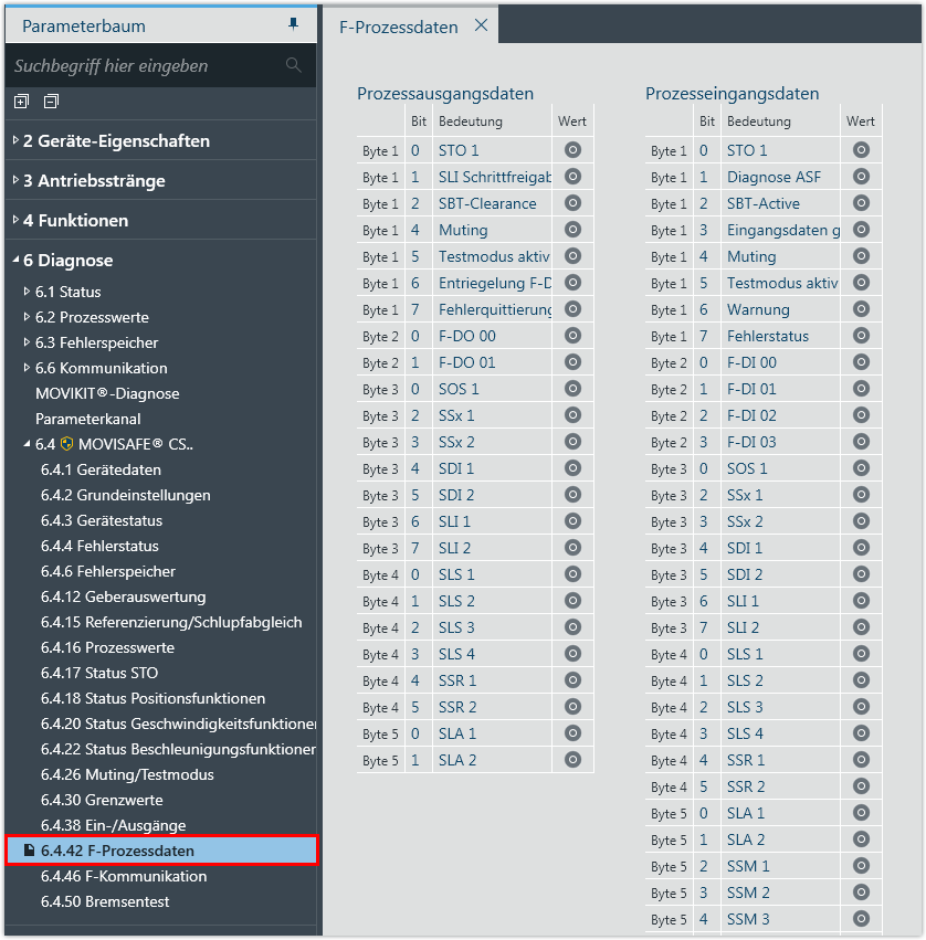 Prozessdatenübertragung prüfen