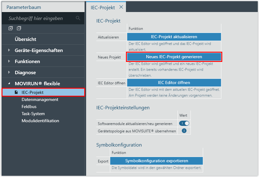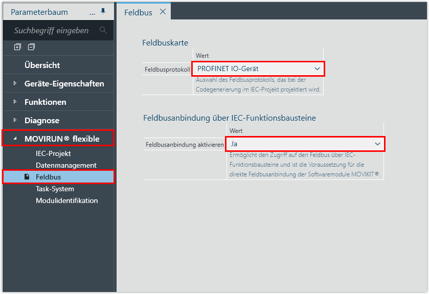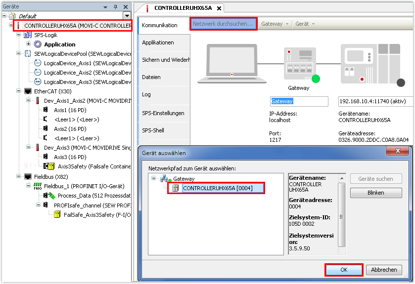 Konfiguration der Geräte des Automatisierungsbaukastens MOVI‑C