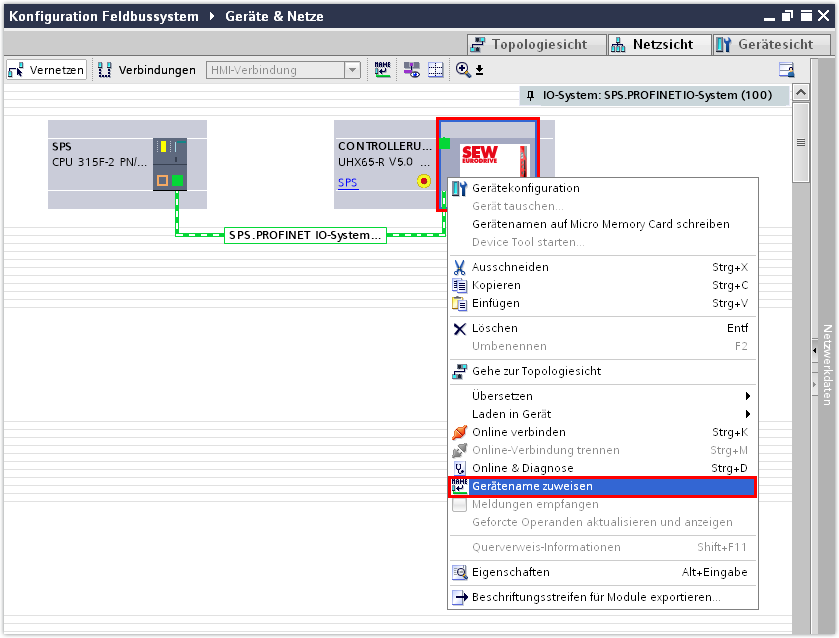 Controller im TIA Portal in das PROFINET-Netzwerk einbinden