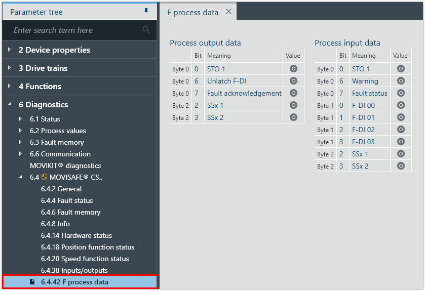 Checking the process data transfer