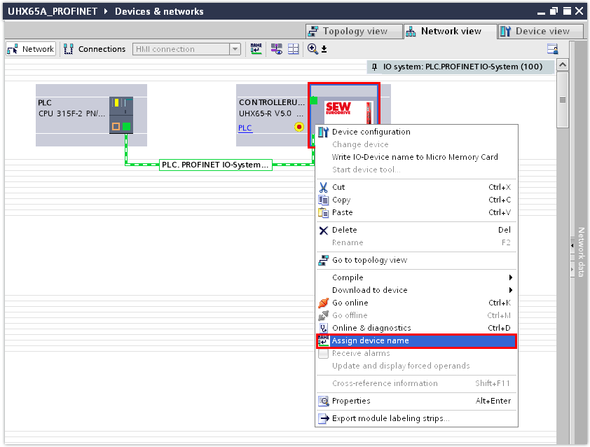Integrating controllers in the PROFINET network in TIA Portal