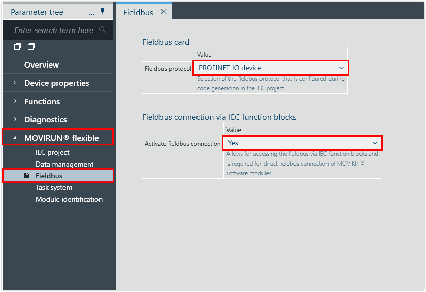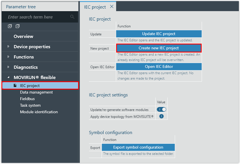 Configuración de las unidades del módulo de automatización MOVI‑C