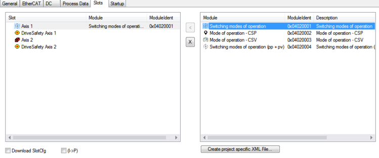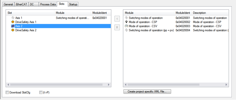 EtherCAT®: Adjust the slot configuration, generate double-axis module