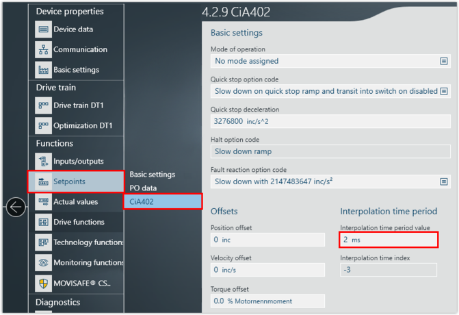 Se identifican los ajustes que deben definirse adicionalmente al integrar un variador con perfil de unidad CiA402.
