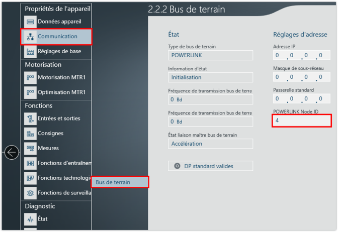 Intégration du variateur de vitesse dans un réseau POWERLINK