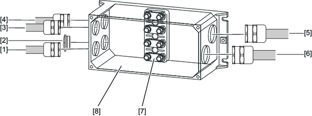 [3] | EMC screw fitting M25 | [7] | Terminal block in delivery state with four jumper connections in each case |