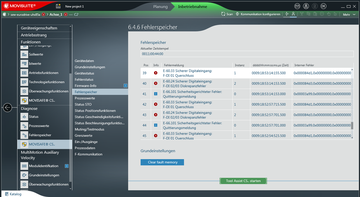 - Fehlermeldungen mit parametrierbarer Reaktion