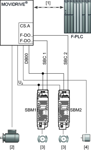 SBC, SBC 1, 2 | Steuersignal(e) zur sicheren Ansteuerung der Bremse(n) und zur Ansteuerung der Bremsen(n) während aktivem Bremsentest |