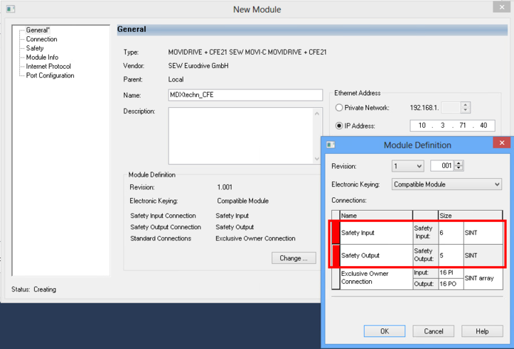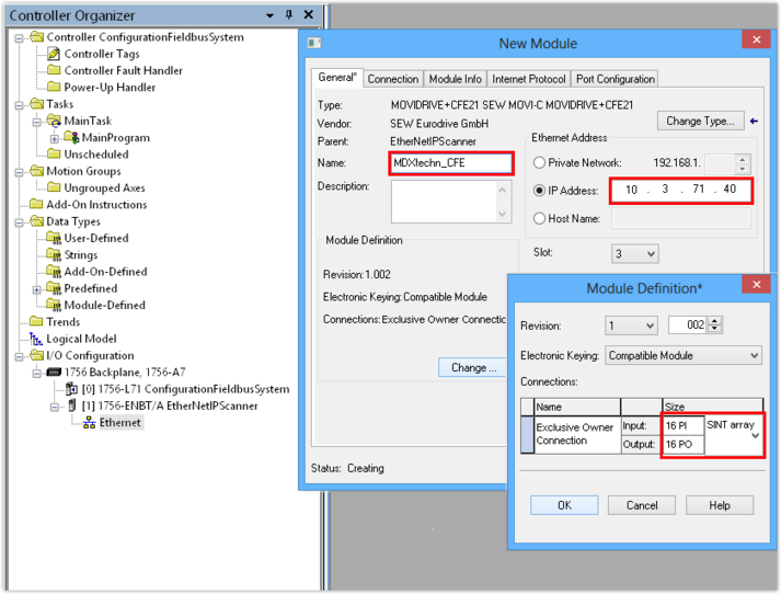 - Enter the IP address of the application inverter. The PLC will address the device using this IP address.