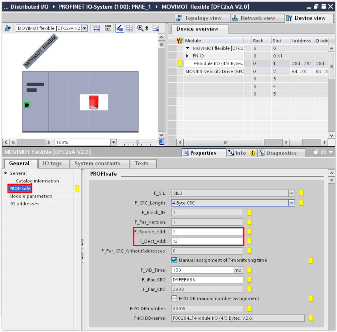 The configuration of PROFIsafe parameters is explained in more detail using an example. In the example, a MOVIMOT® flexible decentralized inverter is integrated into a PROFINET network. The inverter has an integrated MOVISAFE® CSB51A safety option.