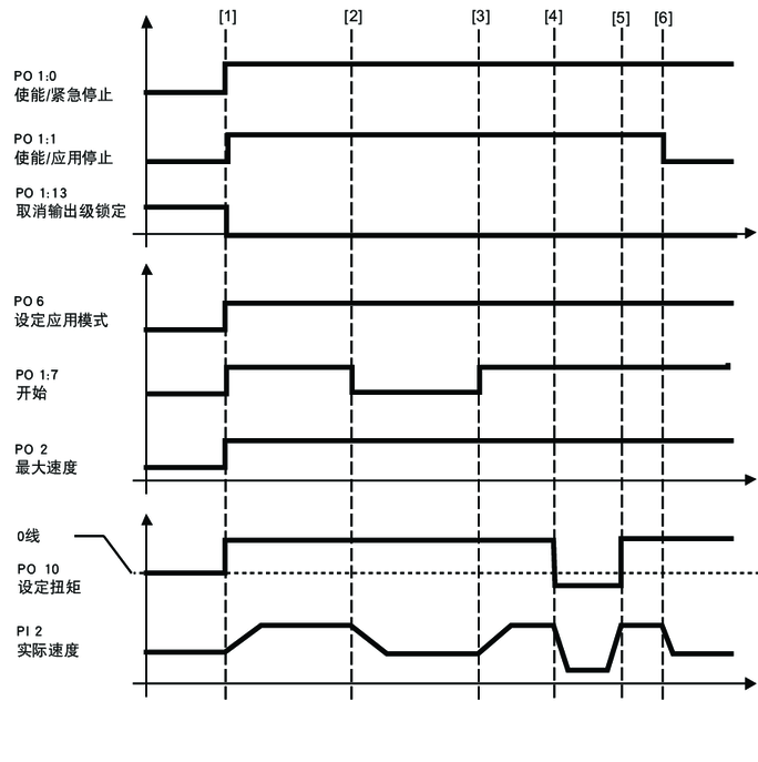 轴扭矩控制程序 (800),带或不带编码器反馈(驱动功能FCB 07扭矩控制中)。扭矩设定值的符号决定电机旋转方向:正设定值对应正电机旋转方向。