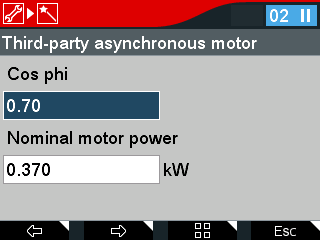 The following chapter describes the most important menus for starting up a third-party asynchronous motor using an example.
